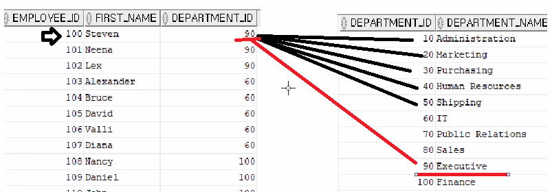 employees 테이블의 department_id와 departments 테이블의 department_id가